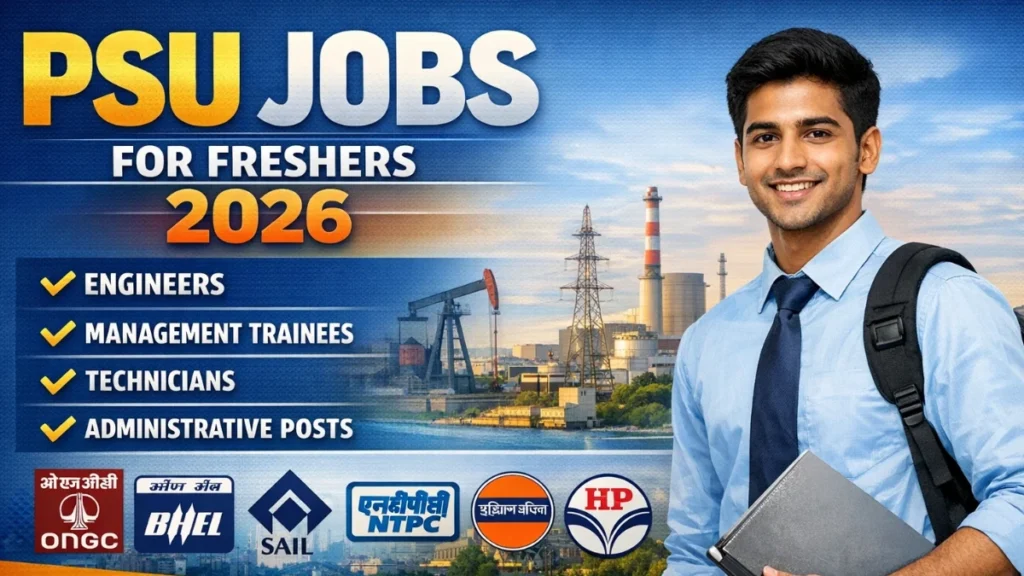 PSU Jobs for Freshers 2026 उन candidates के लिए best opportunity है जो secure government job with high salary चाहते हैं। Public Sector Undertakings (PSU) हर साल हजारों freshers को recruit करती हैं और 2026 में PSU नई भर्ती का scope काफी बड़ा रहने वाला है।